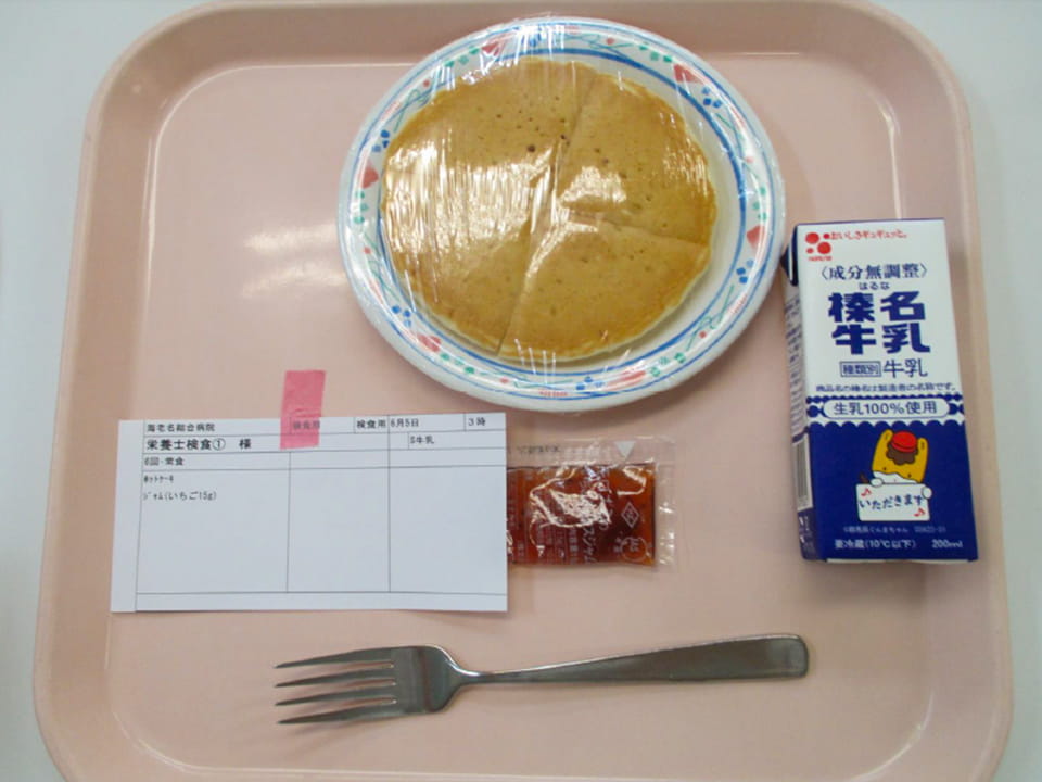- 塩分を6g/⽇未満に制限し、⾎圧コントロール🠊主⾷パンは無塩パン、ジャム・バター・味噌汁はつかない